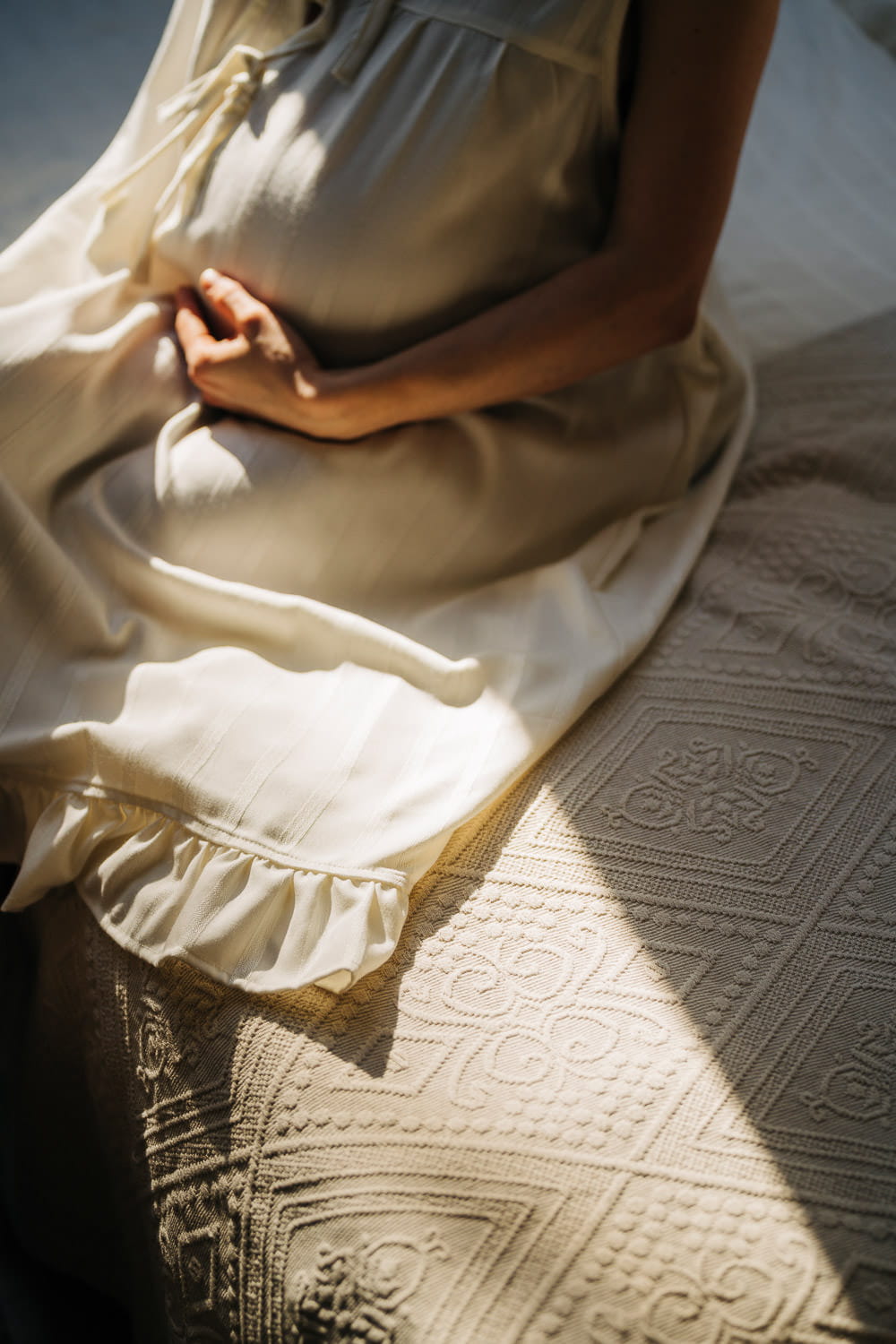 Uszyta z oddychającej tkaniny bambusowej o delikatnej, pionowej strukturze, która jest przyjemna dla skóry i zapewnia komfort o każdej porze nocy. To koszula, która łączy wygodę z subtelną, romantyczną estetyką – na czas oczekiwania i pierwsze wspólne chwile z dzieckiem.