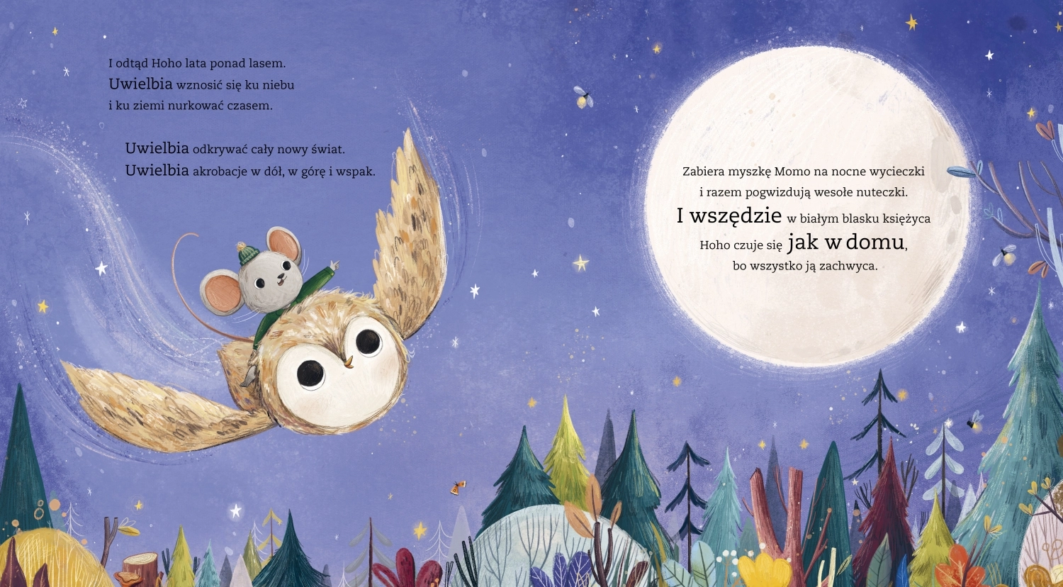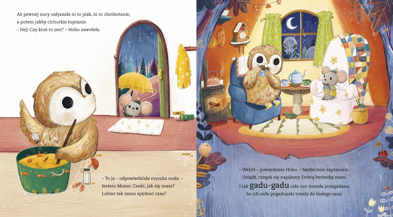 Sówka Hoho kocha swój dom. Tylko tu czuje się bezpiecznie. Tu jest przytulnie i ciepło. A Hoho nie lubi ani deszczu, ani burzy. Boi się ciemności, bo tam może czaić się niebezpieczeństwo.