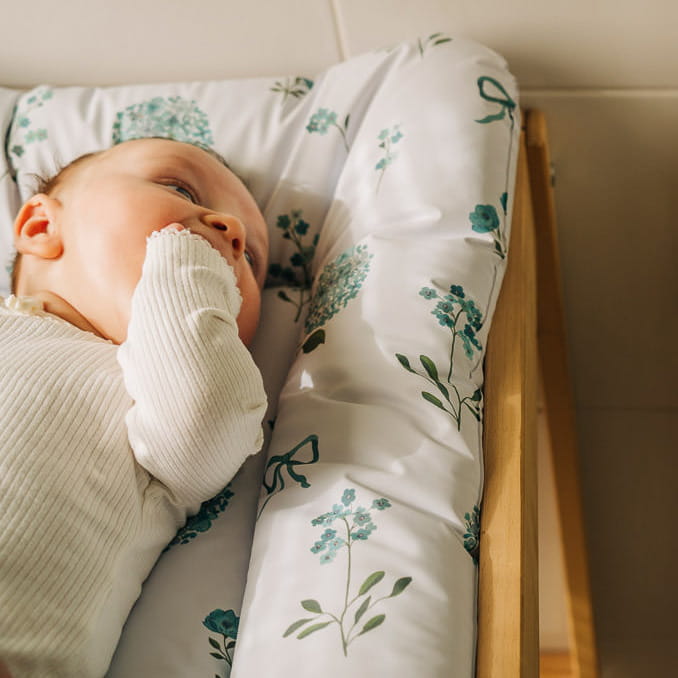 Miękki przewijak przeznaczony jest do użytkowania na twardym podłożu - specjalnej komodzie z miejscem na przewijak, drewnianym stelażu na łóżeczko lub każdej innej twardej powierzchni, na której zorganizowany jest kącik do przewijania maluszka. Ma ruchome, boczne skrzydełka, które umożliwiają dopasowanie przewijaka do różnej wielkości powierzchni. Wykonany jest z bezpiecznej dla skóry dziecka, atestowanej folii najwyższej jakości. Produkt posiada certyfikat Oeko - Tex Standard 100.