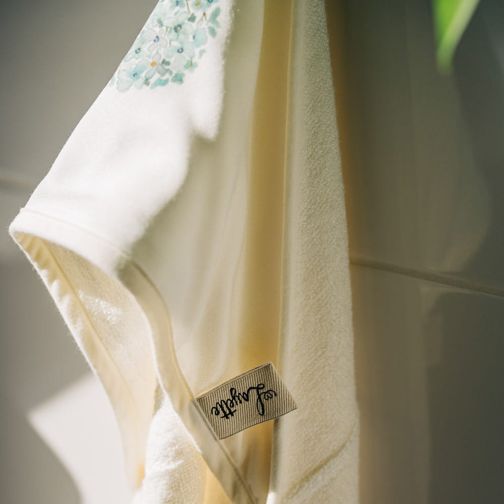 Ręczniki zostały uszyte ręcznie w Polsce, z certyfikowanych tkanin, z niezwykłą dbałością o każdy detal.