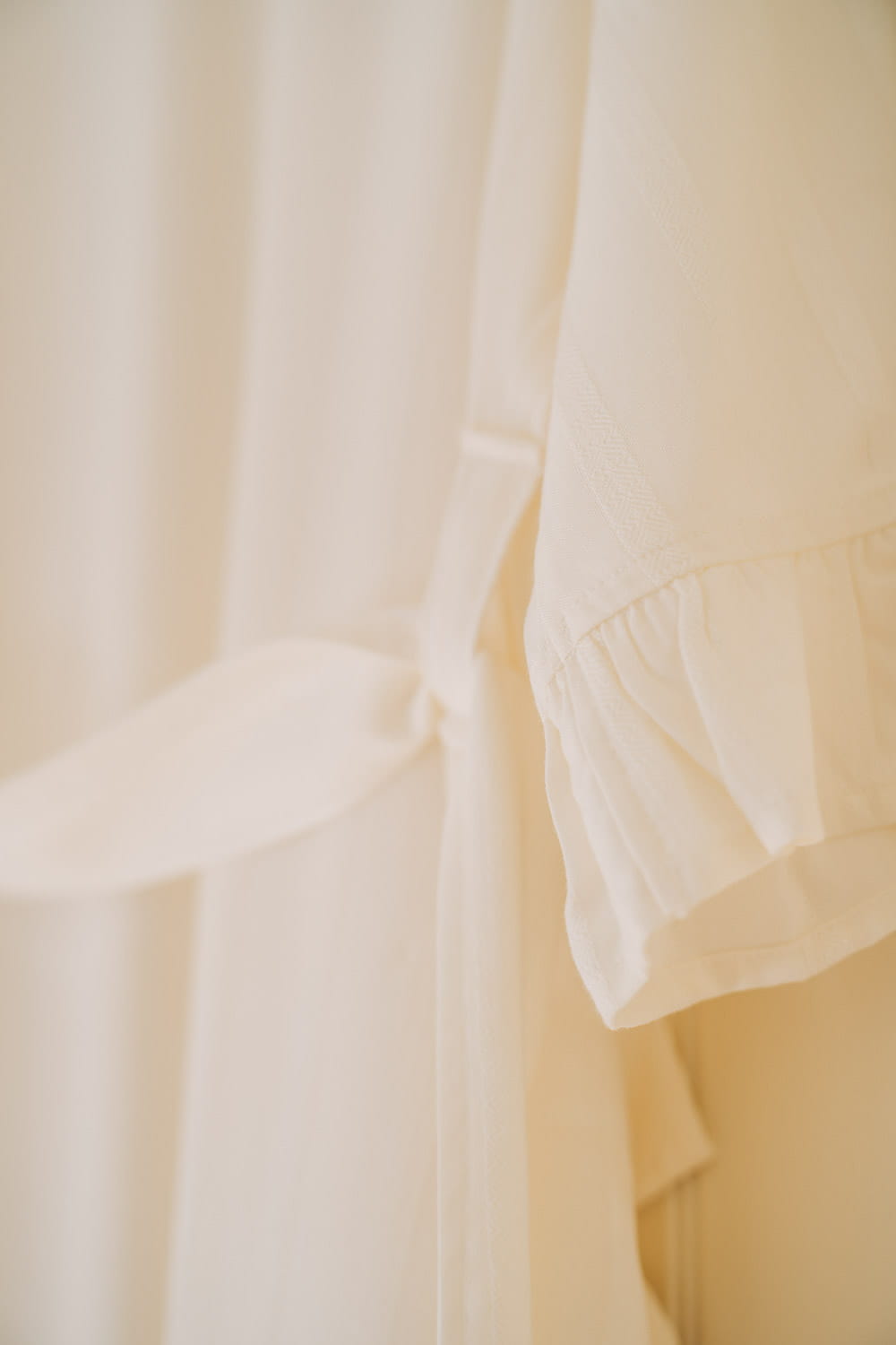 Rękawy wykończone są romantycznymi falbankami, które dodają całości lekkości i kobiecego uroku. To szlafrok, który pięknie dopełnia koszulę nocną z tej kolekcji – tworząc wygodny, a jednocześnie subtelny zestaw na czas oczekiwania i pierwsze wspólne chwile z dzieckiem.