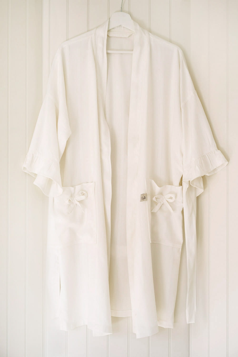 Delikatny, romantyczny szlafrok stworzony z myślą o czasie ciąży i pierwszych tygodniach po narodzinach dziecka. Jego swobodny krój sprawia, że pięknie układa się na sylwetce – zarówno na rosnącym brzuszku, jak i później, gdy najważniejsza jest wygoda i bliskość z maluszkiem.